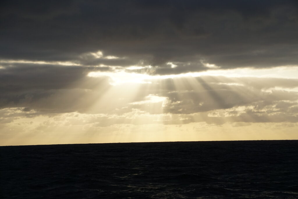 Sitting on the front of the boat, with the wind at my back, gazing over the ocean swells, I see schools of flying fish surfacing the water—gliding through the wind before diving back into the sea.