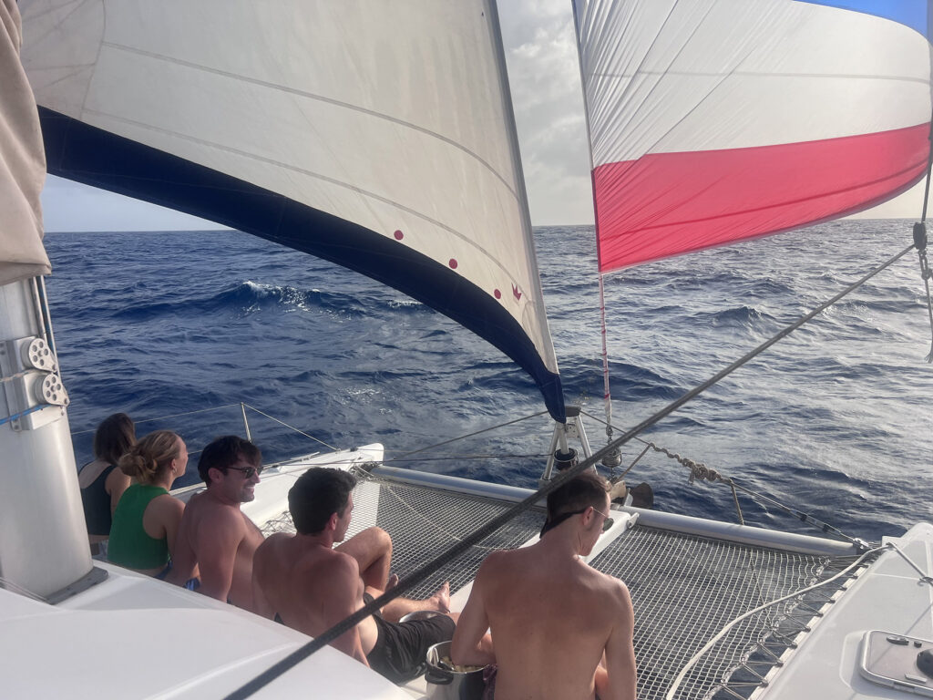 De verbindingen die ik aanga tijdens mijn zeilreis zijn het grootste cadeau van dit avontuur. Ik voel een traan van geluk in mijn ooghoeken opkomen als ik zie wat voor mooie personen met mij aan boord zijn. Het bijzondere is dat de omstandigheden van met elkaar midden op zee zijn, naar mijn idee onze gevoelsnaren versterken. De nuances in de relaties tussen mijzelf en iedereen aan boord zijn zo zuiver. Ik merk dat ik onbewust meer oppik in iemands non-verbale communicatie of energie dan aan wal. Hoe iemand zich voelt, wat iemands intenties zijn als diegene iets deelt of zegt, wanneer een onderwerp beladen is met een emotie.